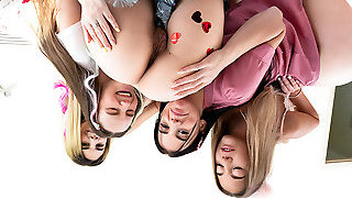 Four sexy sluts lick and converse in a lesbian group