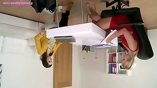 Sexy Blonde Office Secretary is Pissing On Her Boss