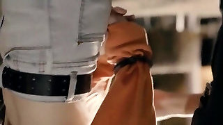 A Brunette Thief Has to Fuck a Busty Blonde with a Belt Cock to Avoid Police