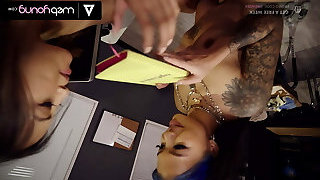 Funny Horny Lesbian College Girl Group Sex in Classroom