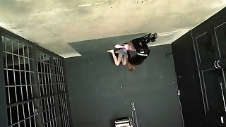 Spectacular gal in latex catsuit bangs a pregnant college girl in jail