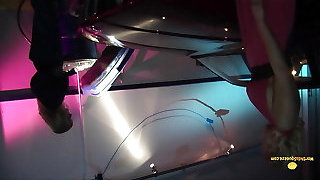 Lesbian fucked mature milf in the car. Big tits and big ass in sexy underwear. POV.