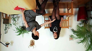 No rent money makes the brunettes suggest a threesome instead of paying the girl/girl landlord