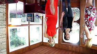 Paul Chaplin getting seduced into a fourway by lesbos in stockings