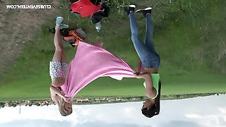 Outdoor lesbian fucktoy insertion have fun with Alecia Fox and Angela Allison
