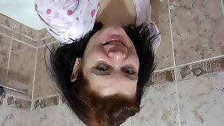 I caught my virgin stepdaughter sucking my husband's rod in the bathroom so I made him give her a facial, threeway pee