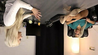 Desperate for the job the blonde offers her bod and fingering skills to the dyke manager
