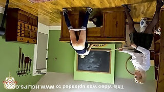 Huge Fat Cougar Pulls Up a Silk Gown Of Her Plump-bum GF And Fucks Her With Strup-on In the Kitchen