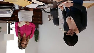 Kissa Sins and Bella Rolland Lick and Trib Each Other's Pussies Right On The Anchor's Desk - Brazzers