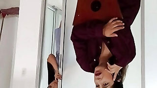 My friend is selling me some magazines and I drill her until I jizz in my mouth