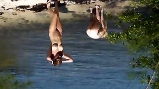 My girlfriend(the light blond, small tits) and my wife, both Twenty One y.o., naked into the wild.