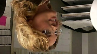 Sandy-haired glasses wearing nerd got lucky as she fucks with a fake baps milf