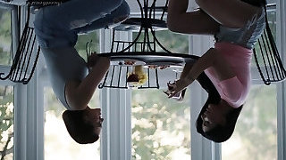 Wild lesbos lick each other's ass and pussy in the kitchen