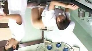 Japanese nurse seduces the lesbian doc and eats her pussy