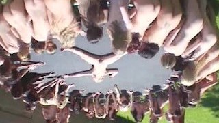 Kelly Wells splattered on by 35 girls in giant outdoor lezzie Bukakke party!