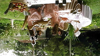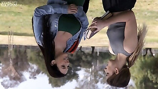 Wild slut with nice tits uses wire-on with girlfriend outdoors
