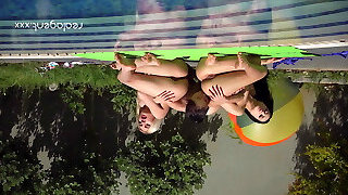 Three sexy Russian lesbians anal getting off and pussy licking near swimming pool