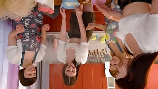 Nubiles in Hard Lesbian Game Orgy With Strapon