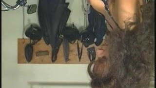 Women abuse a woman using strap dildo
